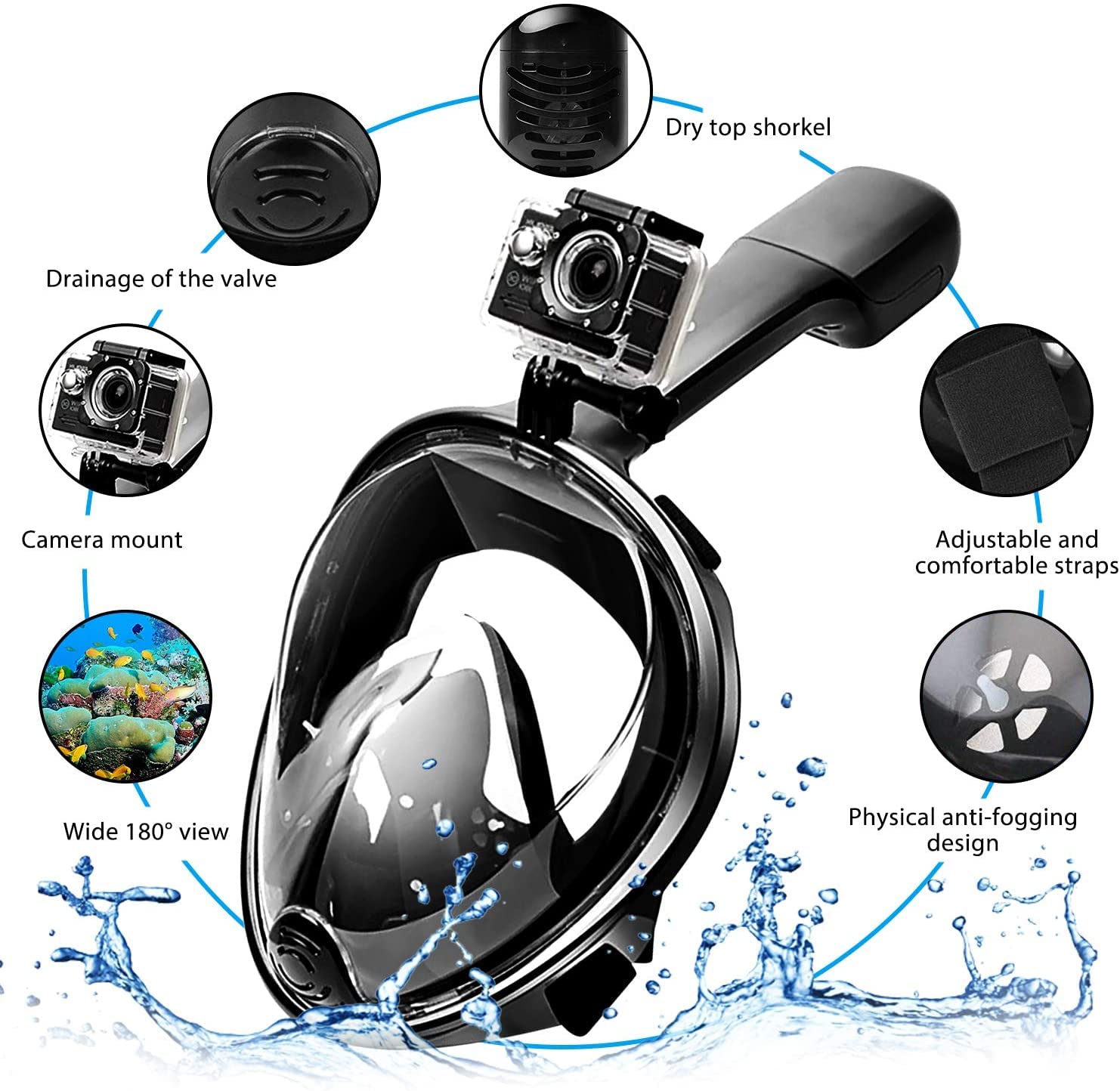 Life108 Full Face Foldable Snorkel Mask with 180 Degree Panoramic View, Anti Fog & Anti Leak Design with Action Camera Mount, Snorkeling Gear for Kids/Adults